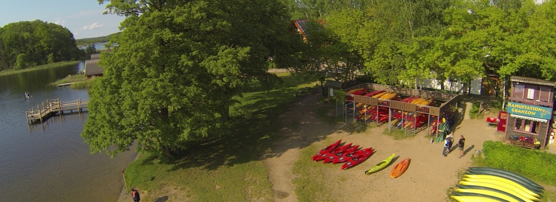 Direkt am See mit Badestrand gelegen, bietet die Kanustation Granzow neben dem Kanuverleih einen Wiesenzeltplatz und das Gruppenhaus "Sommerhof Granzow" an.
